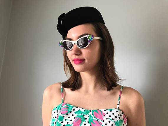 Vintage Style Cat Eye Sunglasses W Flowers Etsy