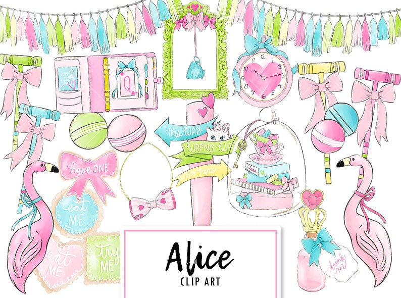 Alice Clip Art Set Wonderland Mat Hatter Cheshire Cat Etsy