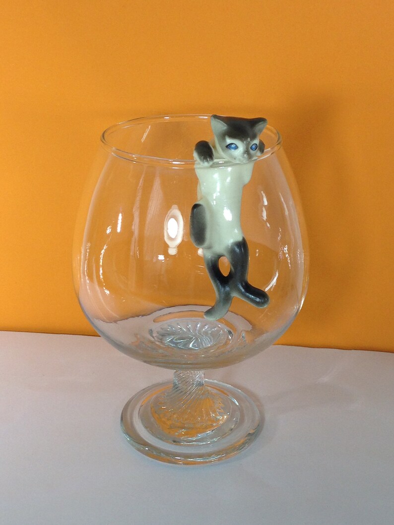 Vintage Brandy Glass Goblet With Climbing Cat Siamese Etsy