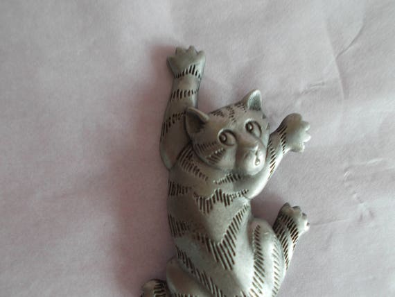 Vintage Jj Pewter Climbing Cat 22 Etsy