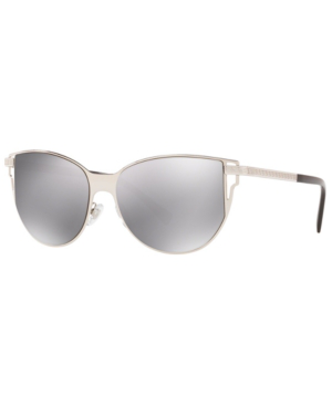 Versace 56mm Cat Eye Sunglasses In Silver Light Grey Mirror Silver