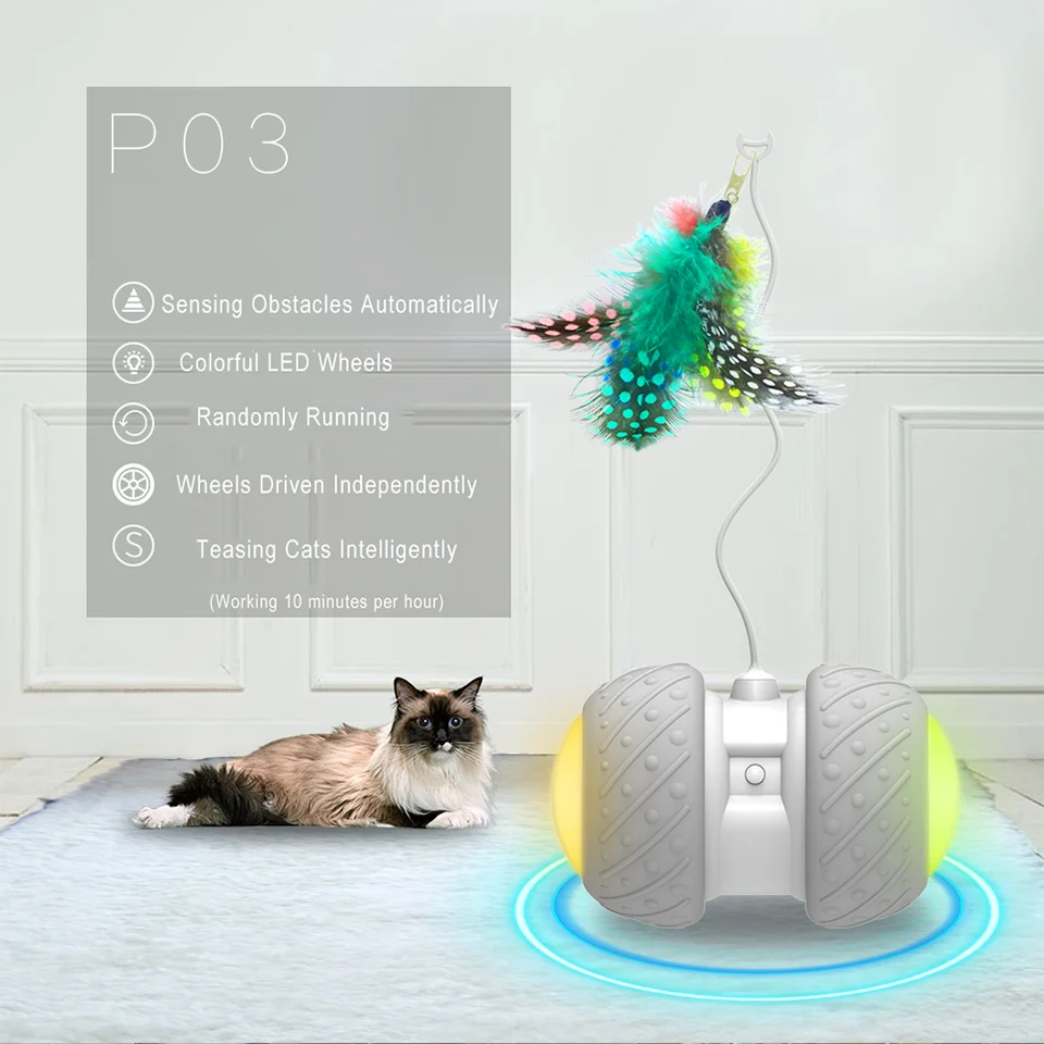 Electronic Pet Cat Toy Smart Automatic Cat Teaser With Led Wheels