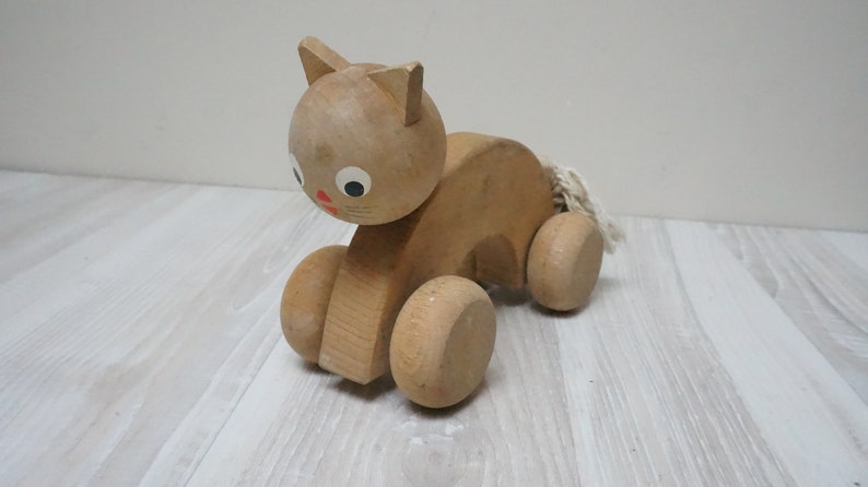 Wooden Cat On Wheels Pull Toy Baby Kid Vintage Retro Child Etsy