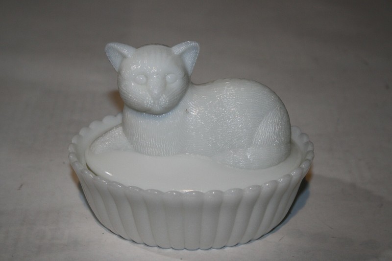 A Comparison Of The Cat Kitty On A Lacy Base Milk Glass Original