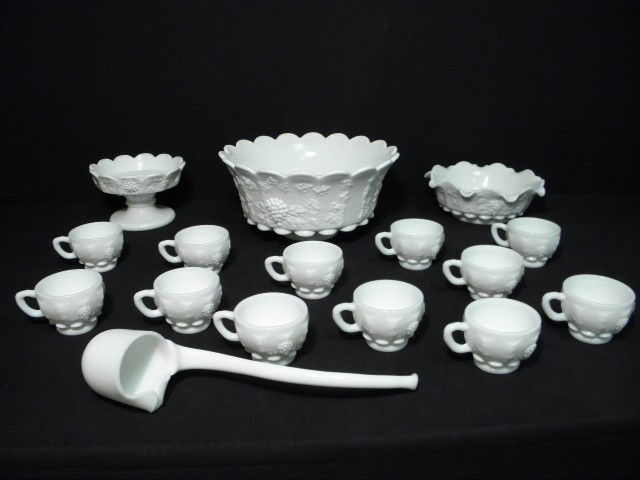 99 Westmoreland Milk Glass Punch Bowl Set Bowl Comp Mar 24