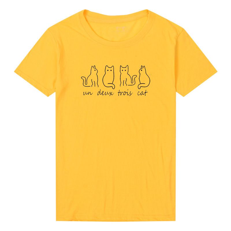 Drop Shipping Casual Un Deux Trois Cat Letter Printing Women T