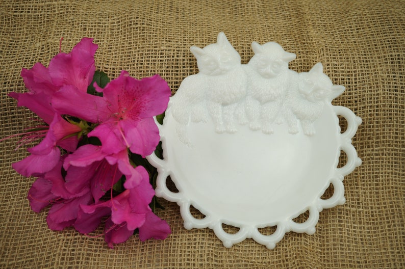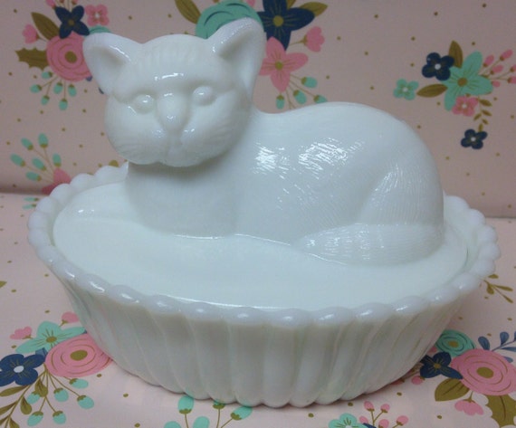 Vintage Westmoreland Cat Candy Dish Milk Glass Etsy