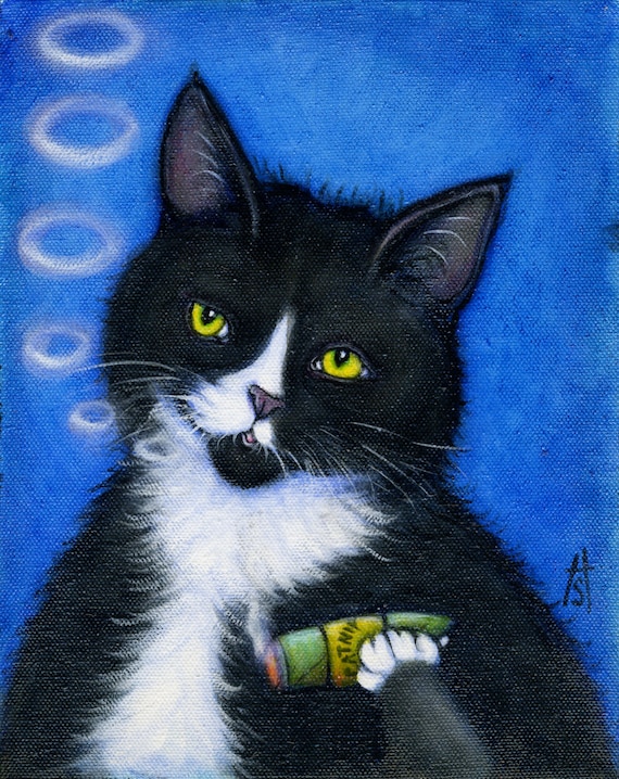 Tuxedo Cat Smoking Catnip Cigar Print Charlie S Etsy