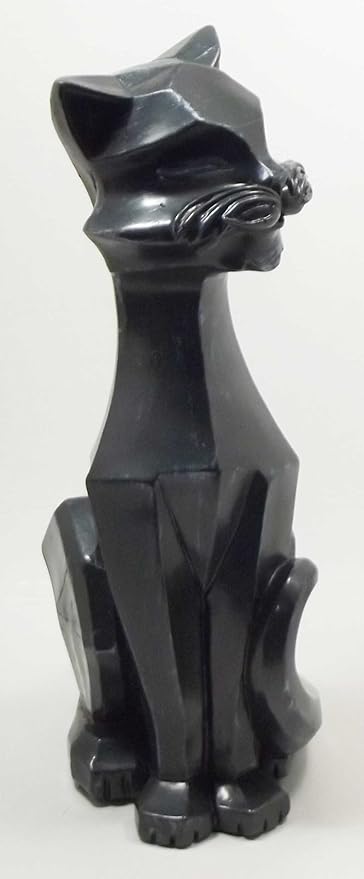 Vintage Black Blue Red Egyptian Resin Cat Statue Art Deco