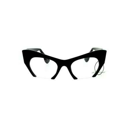 Unique Crop Bottom Retro Cat Eye Clear Lens Eye Glasses Black