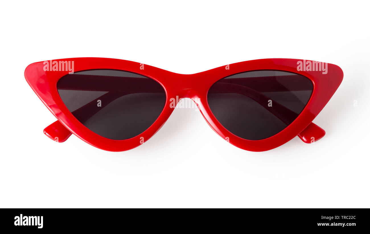 Red Cat Eye Sunglasses Isolated On White Background Stock Photo