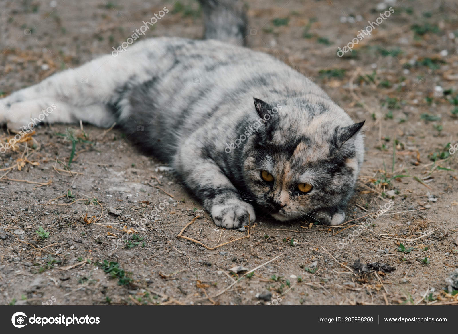 Cat Animal Type Mammal Pet Cute Gray Color Sitting Relax Stock