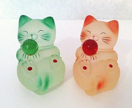 Amazon Com Pair Of Two Green And Red Maneki Nekos Spray