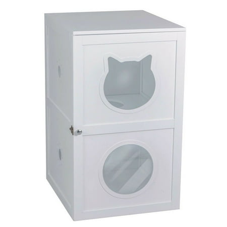 2 Story Pet Crate Cat Litter Box Enclosure Furniture Cat House
