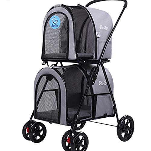 Yzmkd Pet Stroller Carrier Double Decker Folding Four Wheeled Pet