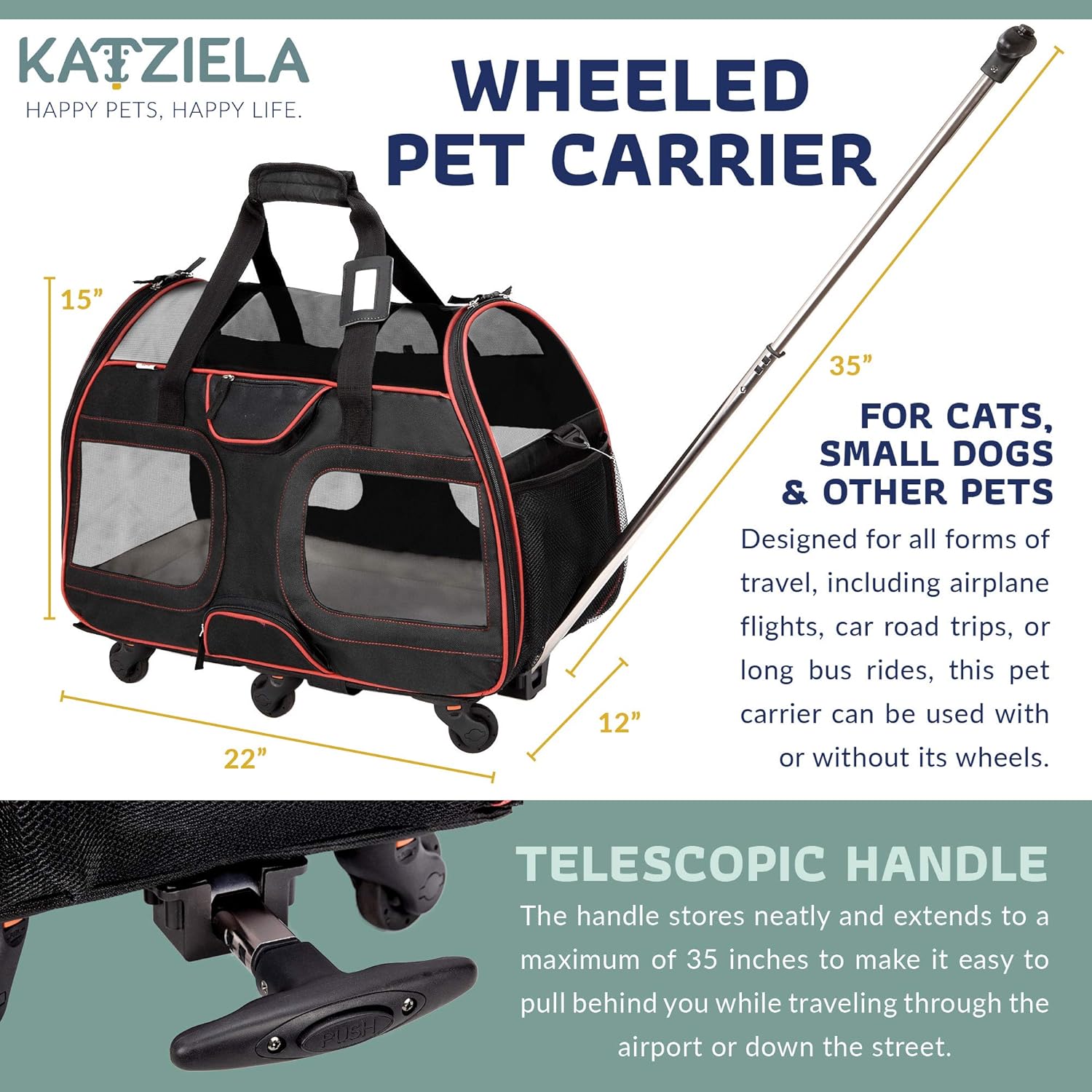 Katziela Airline Approved Pet Carrier With Wheels