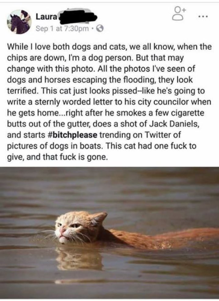 Photo Of Angry Cat In Harvey Floodwaters Sparks Memes