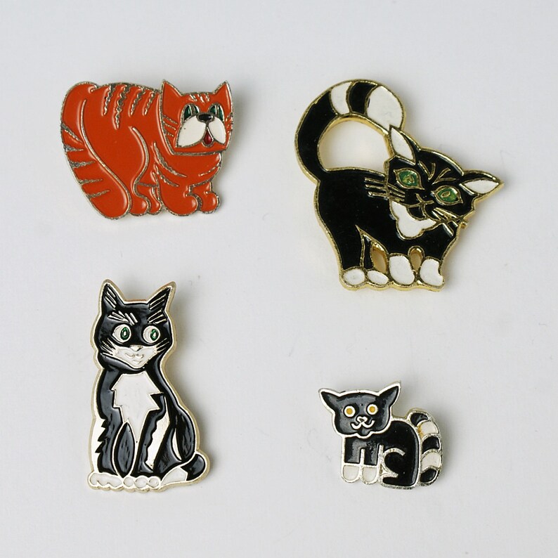 Adorable Ginger And Black Cat Pins Vintage Collectible Badges Etsy