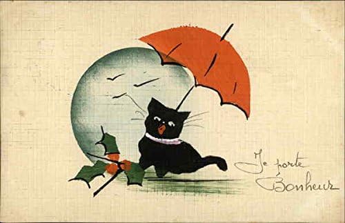 Black Cat With Umbrella Cats Original Vintage Postcard 1924 At