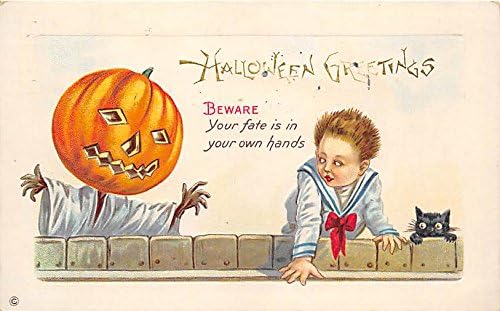 Amazon Com Pumpkin Scarecrow Child Black Cat Halloween Postcard