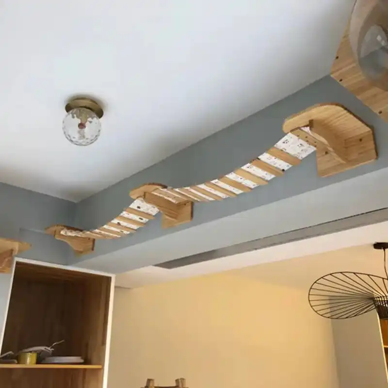 Cat Bridge Wood Hanging Platform Wall Mounted Pet Furniture Cat