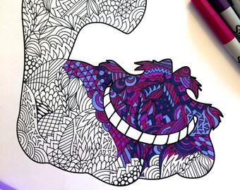 Trippy Cheshire Cat Alice In Wonderland Coloring Pages