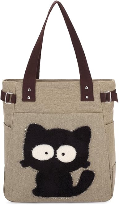 Amazon Com Kaukko Women Canvas Tote Bag Big Cat Handbag Khaki