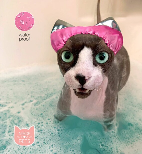 Shower Cap For Cat Silver Ears Bath Hat Cat Hat Waterproof Etsy