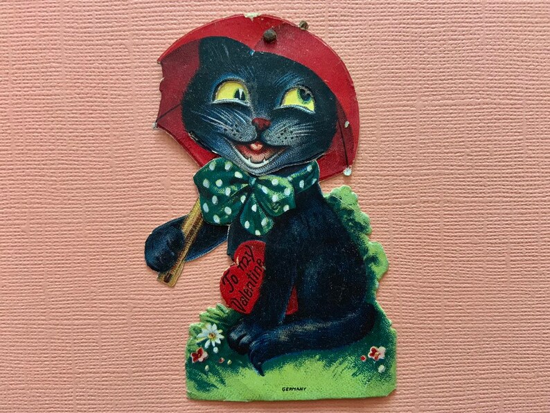 Vintage Mechanical Valentine S Day Card Black Cat With Etsy