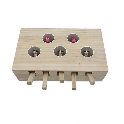 Cat Toys Interactive Mouse Wooden Whack A Mole Exercise Puzzle Box