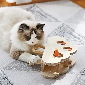 Volwco Cat Funny Toys Interactive Wooden Solid Whack A Mole Mouse
