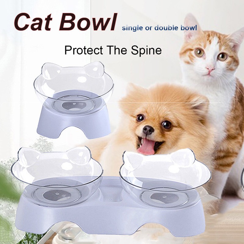 Cat Ears Shaped Pet Cats Transparent Bowl With Holder Anti Slip