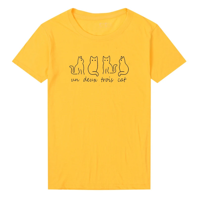 Un Deux Trois Cat Print Women Graphic T Shirts Harajuku Cute Kitty
