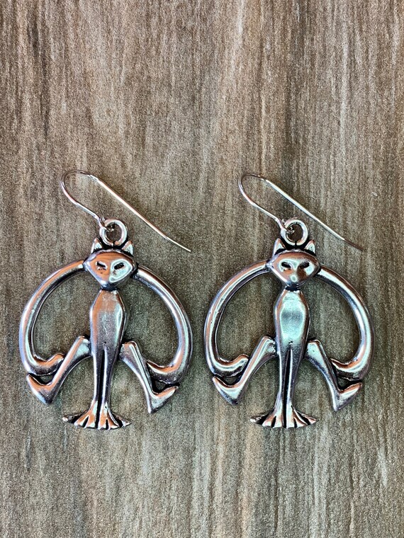 Cat Peace Sign Earrings E10512 Symbology By Lois Wagner Etsy
