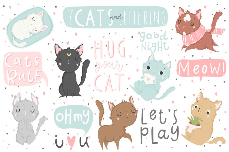Cute Cats Set Cat Clipart Vector Illustrations Digital Clip Etsy