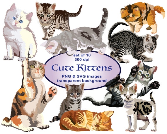 Cute Kittens Clip Art Cats Clipart Animals Clipart Svg Etsy