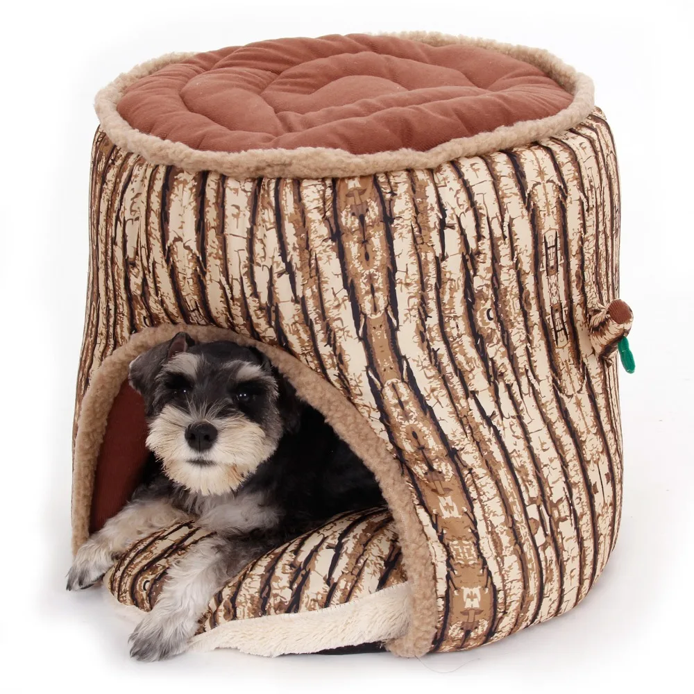 New Style Tree Stump Pet Bed Soft Warm Dog Cat House Cozy Nest
