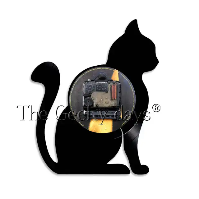 Sitting Cat Silhouette Wall Clock Cat Vinyl Record Clock Unique