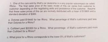 Solved One Of The Cars Sold By Walt S Car Dealership Is A