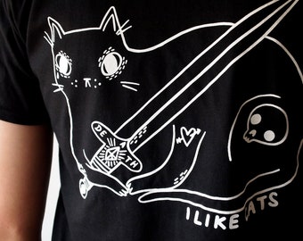 Cat And Sword Tee Back Print Cat T Shirt Cat Shirt Etsy