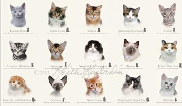 Cat Breeds Feline Panel Cotton Quilting Fabric 60cm X 110cm