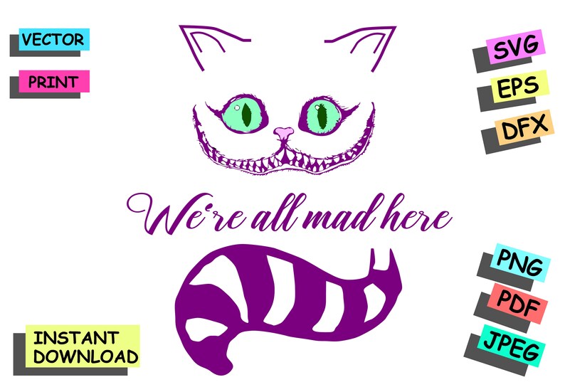 Alice In Wonderland Svg Cheshire Cat Svg Vector Files Dxf Etsy