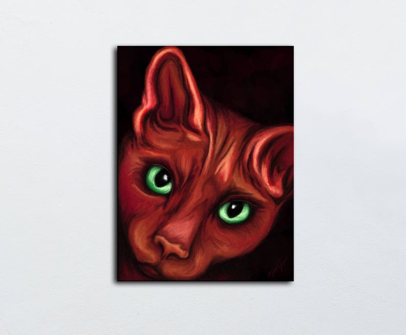 Red Eyes Cat Green Portrait Cat Painting Cat Cat S Eye Etsy