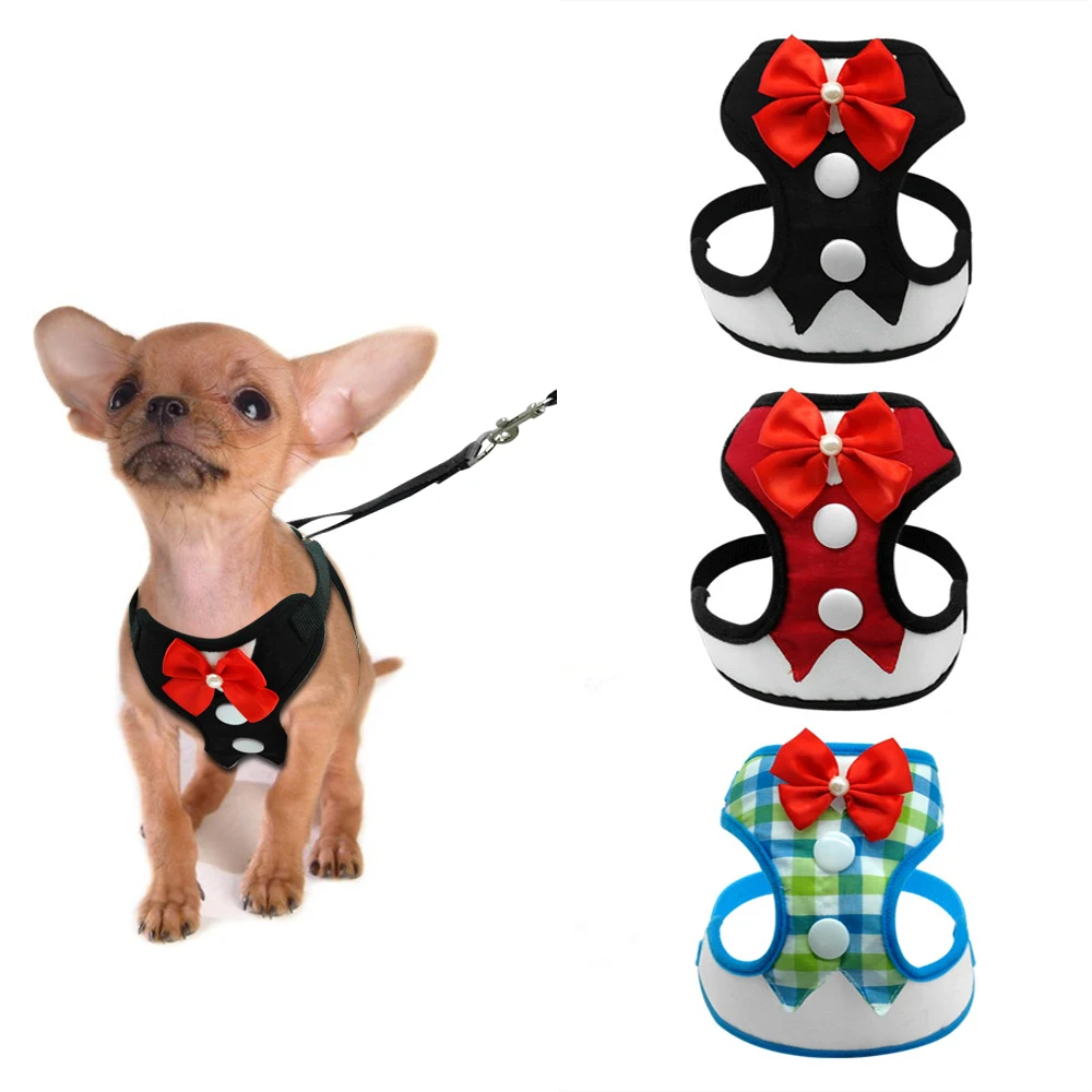 Elegant Cat Dog Harness Vest With Leash Bowtie Adjustable Suit